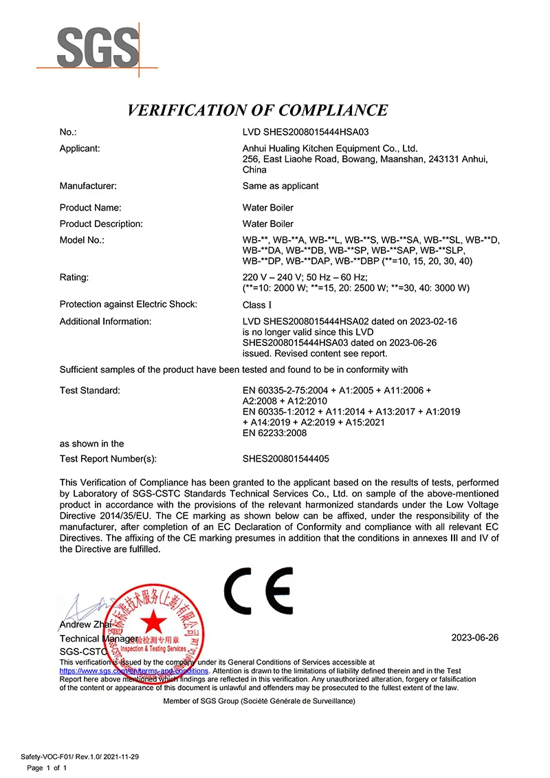 Both production facilities operate with a full-process quality control system, applying consistent standards to ensure long-term product reliability. Hualing is certified to ISO 9001 and ISO 14001 and applies a dynamic supplier management system across more than 200 qualified suppliers. The raw materials used for production pass through 12 inspection procedures before being used as a method of our quality control. Our finished foodservice equipment comply with over 20 international certifications like CE and CB, further proving our standards with the rework rate limited to no more than 0.2%.