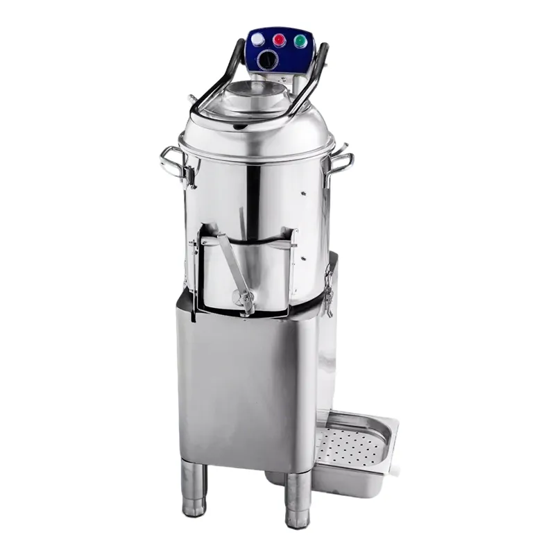 Potato peelers (vegetable peelers) are used for peeling potatoes and similar root vegetables, and they can also be used to wash shellfish such as clams. They use a rotating drum and an abrasive lining to remove the peel, while water rinses away the skins as the batch is processed.