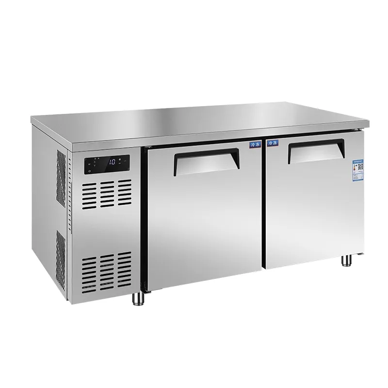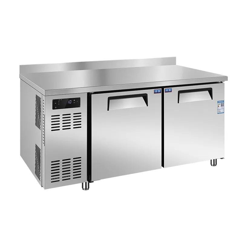 The Asian style 700 series commercial refrigerated worktable is an integrated solution for commercial kitchens, combining refrigeration, freezing storage, and food preparation surfaces in one unit. It caters to high-traffic kitchens of restaurants, fast food, milk tea, and coffee shops in the APAC region by offering flexible storage across dual temperature zones with stable cooling performance.